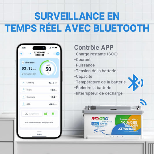 Redodo Batterie LiFePO4 12V 100Ah H190 avec Bluetooth
