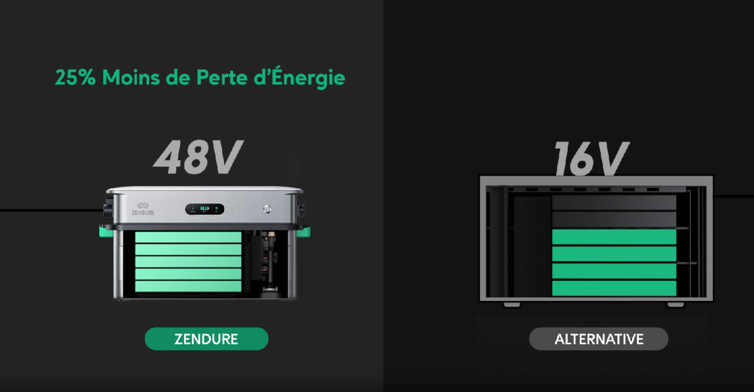 Le SolarFlow 2400 AC est équipé d’une batterie 48 V, réduisant les pertes d’énergie de 25 % par rapport à un système de batterie de 16 V. Économiser sur votre consommation d’énergie n’a jamais été aussi simple.