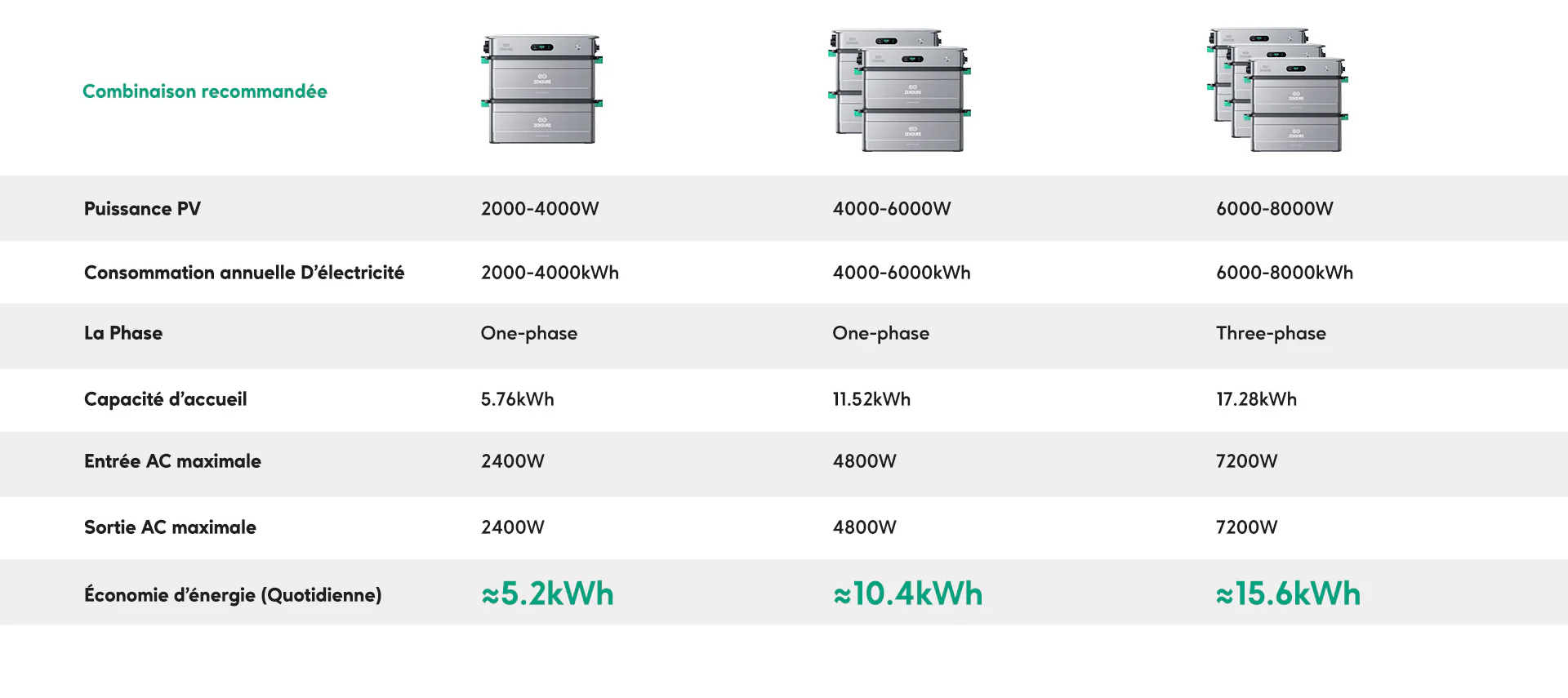 *Si la puissance utilisée dépasse 2400 W ou si la capacité d’un appareil individuel dépasse 15 kWh, veuillez consulter un électricien qualifié pour garantir la sécurité électrique, et assurez-vous que le produit est placé dans un endroit approprié.